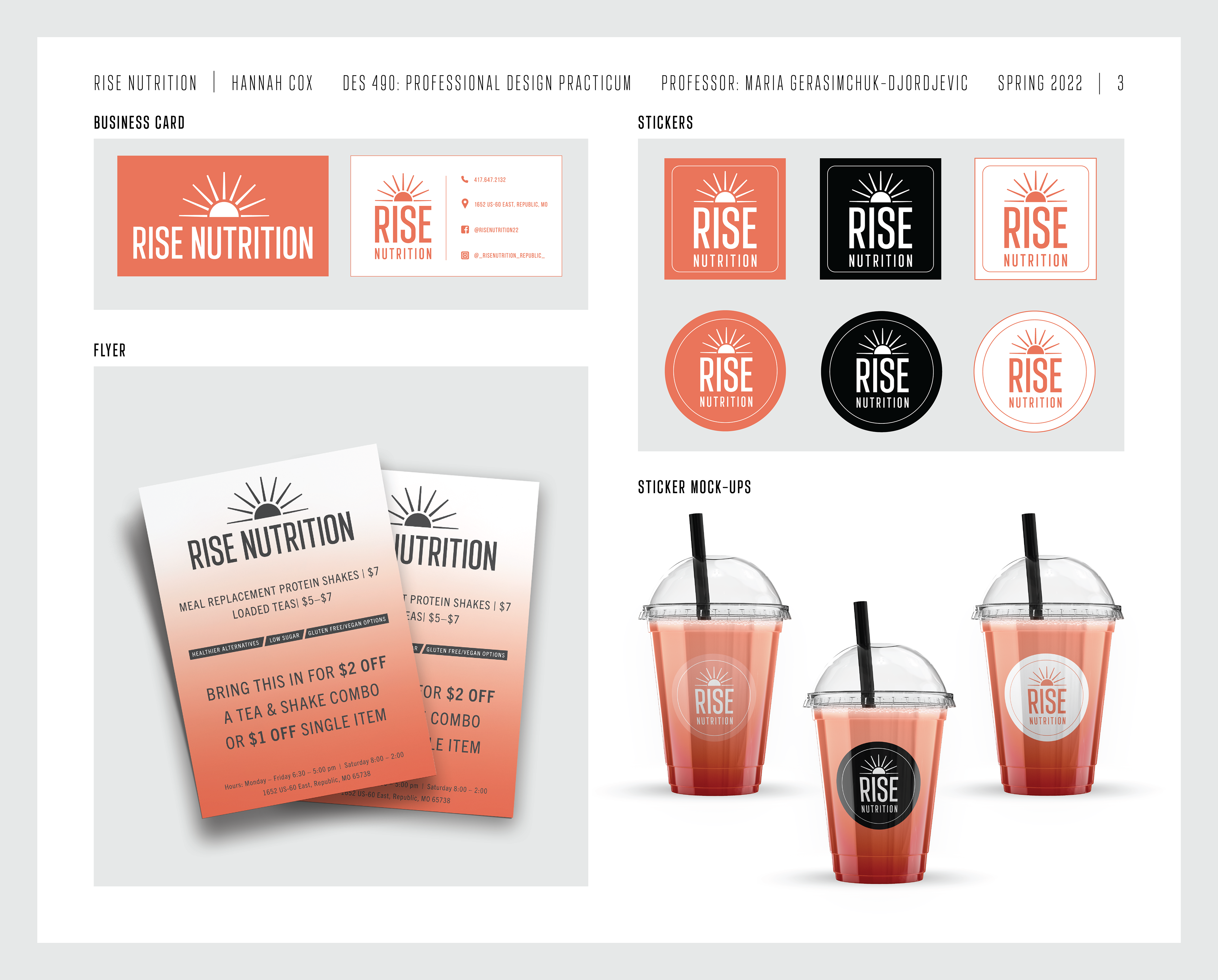 Brand refresh for a wellness-focused nutrition company, featuring new branding and updated visuals across print, apparel, and social media.